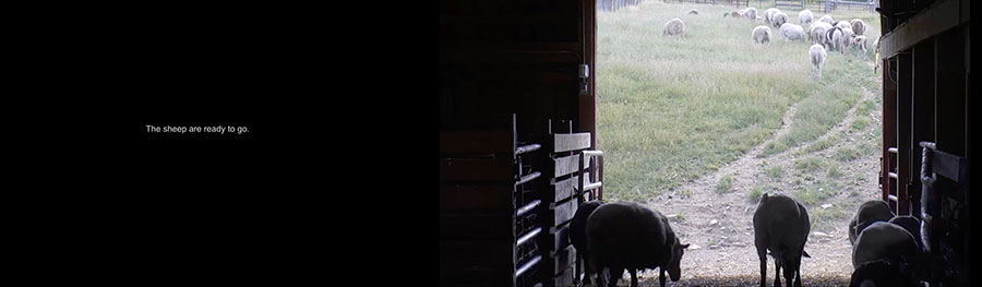 Drive-by projects is pleased to present Ben Sloat’s Sheep Time is the Clock of our Present, a two-channel video/text piece commissioned for the AREA CODE Art Fair.